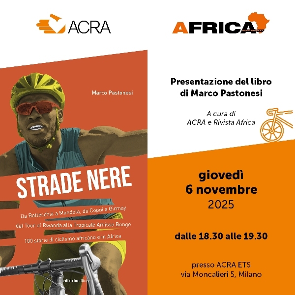 ACRA e Rivista Africa vi invitano ad un viaggio straordinario nel ciclismo del continente nero con la presentazione del nuovo libro di Marco Pastonesi, “Strade nere”.